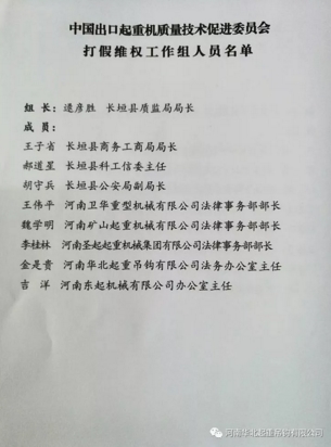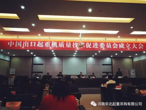 2018年4月12日,中国出口起重机质量技术促进委员会在长垣县揭牌成立,华北吊钩质保部部长张保伟、技术部主管李华庆、法务办主任金是贵分别入选中国出口起重机质量技术促进委员会质量评估**组、标准与技术法规**组、打假维权工作组成员。河南华北起重吊钩有限公司是起重机关键零部件吊钩、吊具、行车轮**配套生产厂家,产品畅销国内,远销国外。公司先后参与制定国家标准和行业标准,成为行业的排头兵、领航者,以可靠的质量和良好的信誉,赢得了中外客商的赞誉。