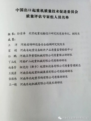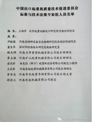 华北起重吊钩有限公司质保、技术、法务主管 入选中国出口起重机质量技术促进委员会**组成员