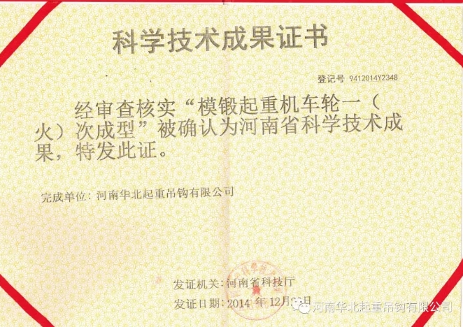 模锻车轮一次成型新生产工艺的研发成功及应用,大幅提高了生产效率,降低了生产成本,为企业带来了可观的经济效益,同时,引领国内同行业迈向更高水平。2015年12月获得河南省科技成果奖。