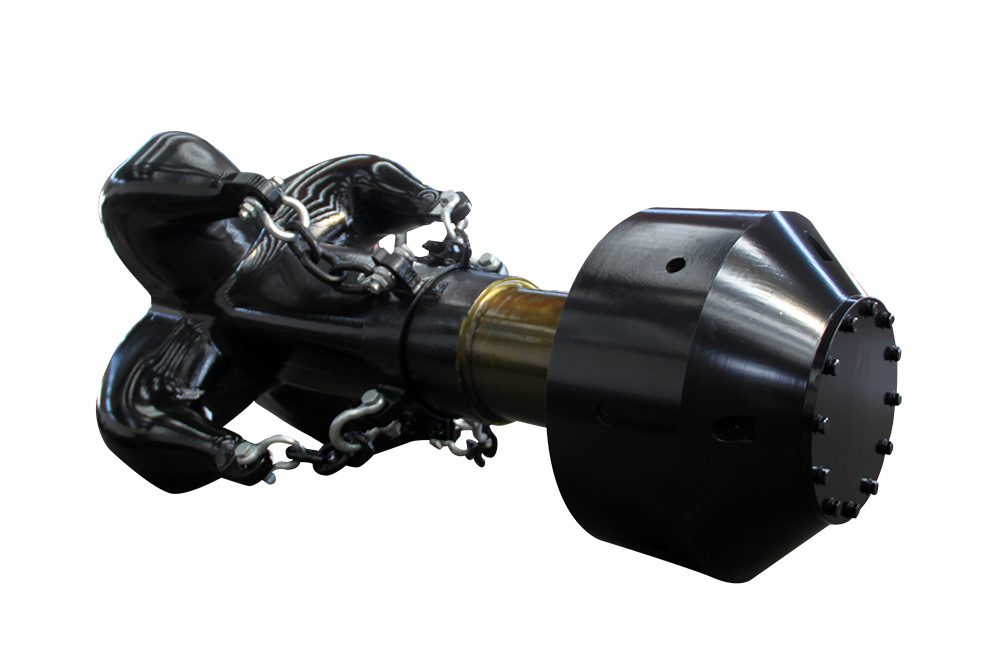 800t四爪吊钩装配生产于2017年1月,应用在“海洋石油201船”4000t起重机。2017年1月10日,在中国船级社(CCS)见证下,对800吨吊钩进行1.25倍拉力试验,分别按0.5倍、0.75倍、1倍和1.25倍四个阶段进行梯级拉力测试,成功进行了拉力试验,试验负荷达到1000吨,并在过程中进行相关检测(开口度、UT、MT),顺利通过了中国船级社ABS、CCS验收。
